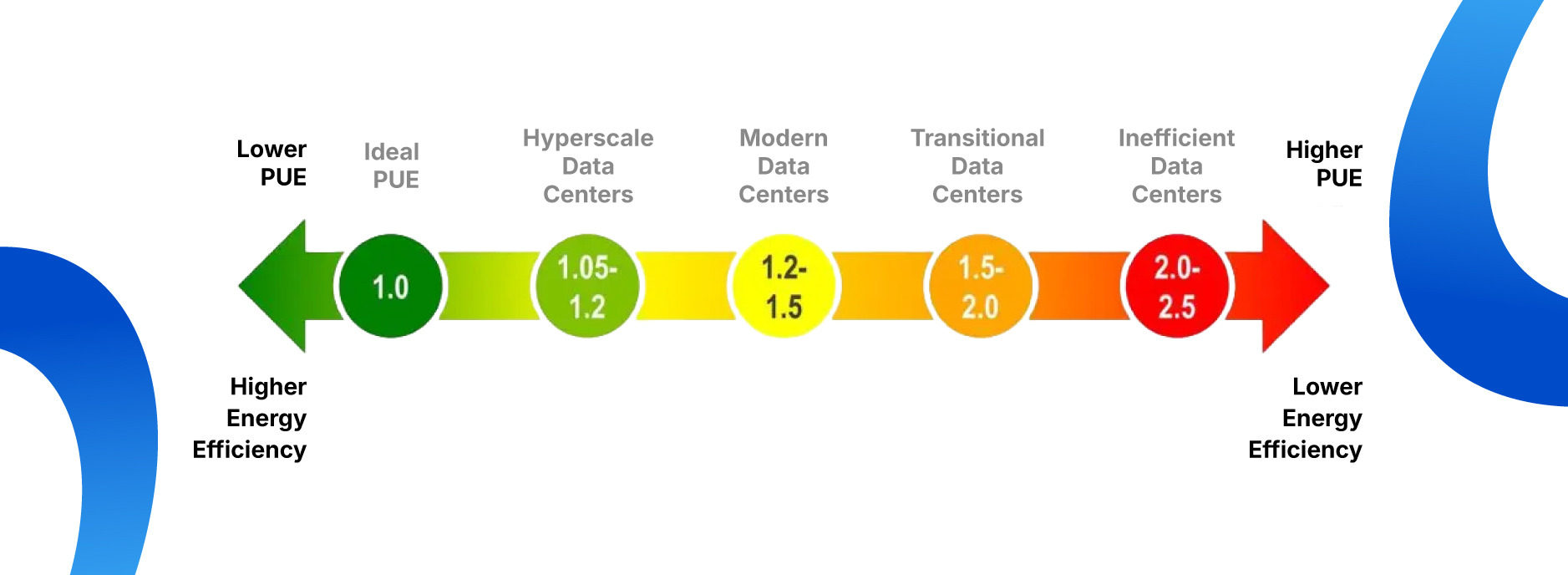 Veri merkezinde PUE’yi etkileyen birçok etmen vardır. Bunların başında soğutma sistemlerinin verimliliği gelir. Isı yükünü azaltmak için kullanılan soğutma mekanizmaları, toplam enerji tüketiminin önemli bir bölümünü oluşturur. Enerji verimliliğini artırmak isteyen veri merkezleri daha etkin soğutma teknikleri ve hava akışı düzenlemeleri benimser.